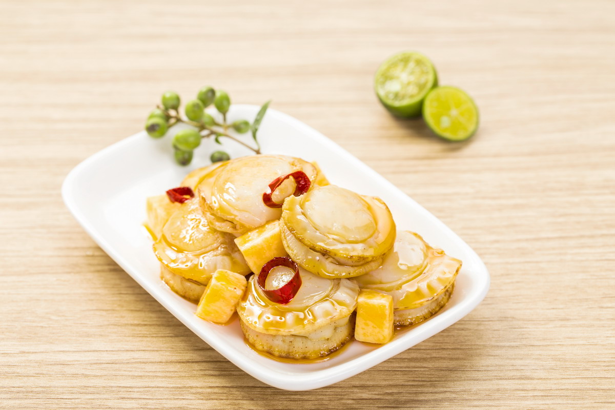 脆嫩的杏鮑菇搭配 鮮美多汁的蝦夷扇貝 肉質(zhì)細(xì)膩潤(rùn)滑飽滿 鮮香四溢