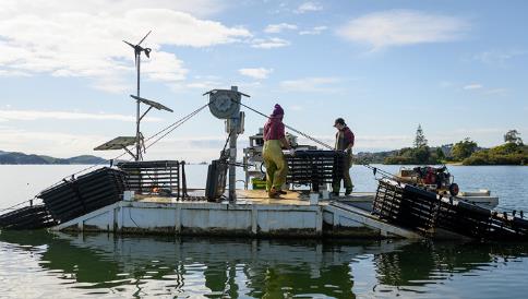 該系統(tǒng)能夠在每一米的養(yǎng)殖線產(chǎn)出50打(每打12只)的優(yōu)質(zhì)牡蠣,遠(yuǎn)遠(yuǎn)超過(guò)傳統(tǒng)每米僅10-15打的標(biāo)準(zhǔn)。在新西蘭,傳統(tǒng)的牡蠣養(yǎng)殖主要以棚架式為主,即牡蠣通過(guò)架袋和捆綁等方式固定在潮間帶的木架上。這種方法不僅需要大量的土地和嚴(yán)格處理過(guò)的木材,而且容易受到洪水等自然災(zāi)害的影響,導(dǎo)致牡蠣被沖走。此外,養(yǎng)殖過(guò)程需要頻繁的人工干預(yù),包括解團(tuán)和分級(jí),因此需要大量的勞動(dòng)力。