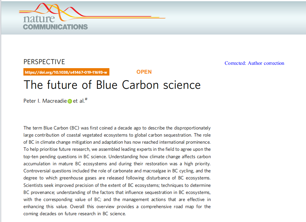 藍(lán)碳(Blue Carbon, BC)這一術(shù)語(yǔ)是十年前首次提出的,用于描述沿海有植被的生態(tài)系統(tǒng)在全球碳儲(chǔ)存中的不成比例的貢獻(xiàn)。如今,藍(lán)碳(BC)在氣候變化減緩和適應(yīng)中的作用已經(jīng)受到國(guó)際關(guān)注。為了幫助確定未來(lái)研究的重點(diǎn),本文匯集了該領(lǐng)域的領(lǐng)先專(zhuān)家,達(dá)成了藍(lán)碳科學(xué)領(lǐng)域前十個(gè)待解決問(wèn)題的共識(shí)。了解氣候變化如何影響藍(lán)碳生態(tài)系統(tǒng)中的碳積累以及在其恢復(fù)過(guò)程中的情況成為了重點(diǎn)問(wèn)題。有爭(zhēng)議的問(wèn)題包括碳酸鹽和大型藻類(lèi)在藍(lán)碳循環(huán)中的作用,以及在受干擾的藍(lán)碳生態(tài)系統(tǒng)中溫室氣體釋放的程度。全球科學(xué)家們正致力于尋求提高藍(lán)碳生態(tài)系統(tǒng)的范圍精確度;確定藍(lán)碳來(lái)源的技術(shù);理解影響藍(lán)碳生態(tài)系統(tǒng)中碳封存的因素,以及藍(lán)碳的相應(yīng)價(jià)值;以及有效提高這一價(jià)值的管理行動(dòng)。總的來(lái)說(shuō),這一概述為未來(lái)幾十年藍(lán)碳科學(xué)研究提供了全面的路線(xiàn)圖。