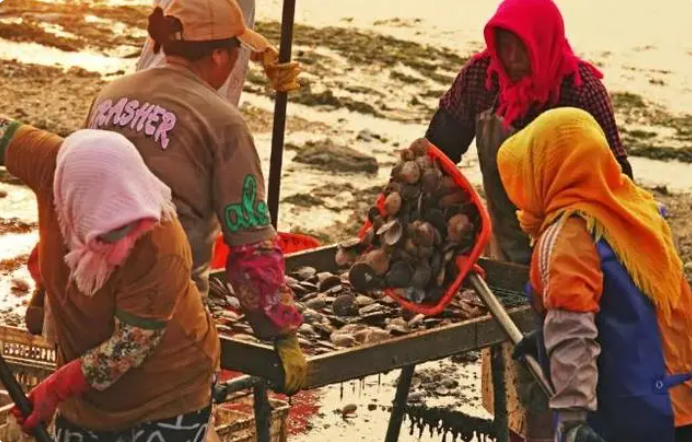 潮水下降的時(shí)候,近海灘涂的水位降低,部分灘涂甚至能夠露出水面,這里是黃蜆子、白蜆子的天然棲息地。