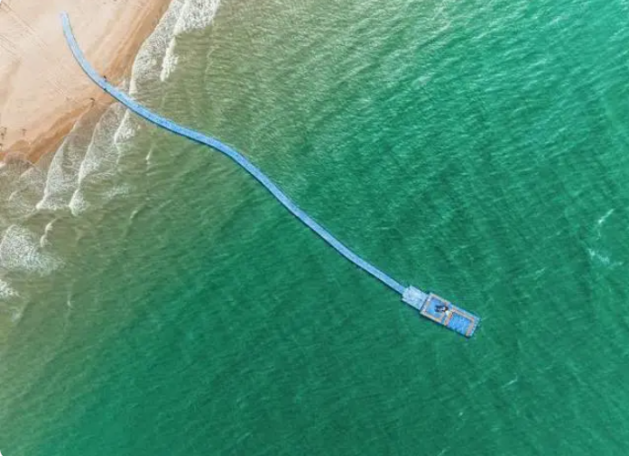 遼寧大連城山頭海濱地貌國家級(jí)自然保護(hù)區(qū),海參育苗,當(dāng)?shù)貪O民利用近海資源開展海水養(yǎng)殖。