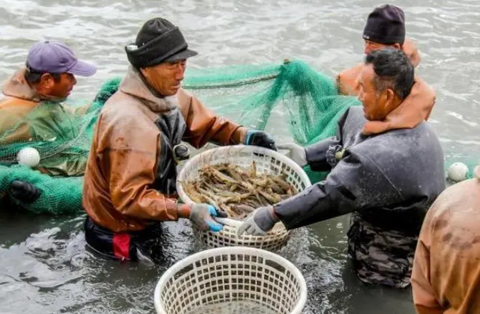 遼寧丹東,沿海養(yǎng)殖區(qū)漁民捕撈對(duì)蝦