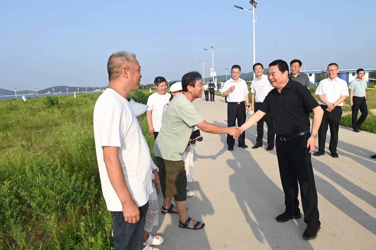 8月的大長山島飲牛灣旅游區(qū),海水湛藍(lán)、海沙潔凈,魚鷗翔集、風(fēng)光旖旎。郝鵬在海邊聽取長海縣發(fā)展海島文旅產(chǎn)業(yè)、海釣產(chǎn)業(yè)情況匯報,與游客親切交流。