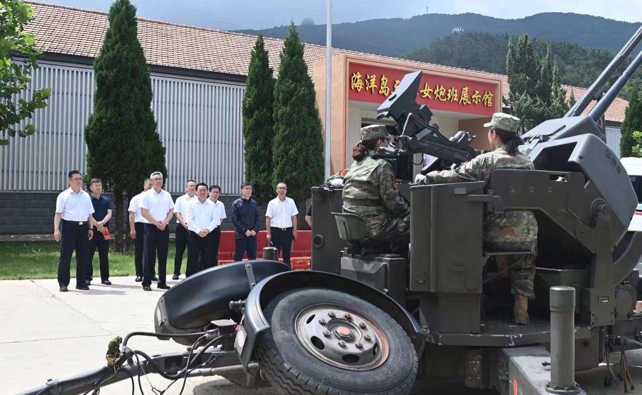 海洋島上的“三八女炮班”成立于1960年,被譽為“海上花木蘭”,至今已是第14代。郝鵬參觀“三八女炮班”展示館并觀看操作演練,壓彈、瞄準(zhǔn)、射擊……看到女民兵們每項操作都干凈利落,一氣呵成,郝鵬動情地說,60多年來,14代女炮班接力守島衛(wèi)國,為建設(shè)鞏固海防作出了積極貢獻(xiàn),書寫了漁家姑娘“不愛紅裝愛武裝”的時代傳奇。他勉勵女民兵們堅守初心使命,將“三八女炮班”精神傳承好發(fā)揚好,以颯爽英姿展示“時代楷?!本耧L(fēng)貌,激勵全省人民打好打贏新時代“遼沈戰(zhàn)役”。