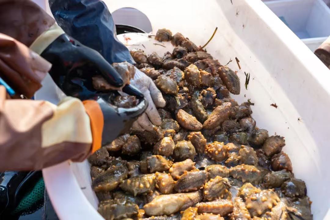 潛水員興奮的說(shuō),今年采捕的源刺參大部分個(gè)頭大、分量足,大的差不多能有四五兩,“今年這邊的海參,指定又是一個(gè)豐收年!”而小的不足2.5兩的海參,就要放歸大海,為的是保證野生源刺參的可持續(xù)發(fā)展。