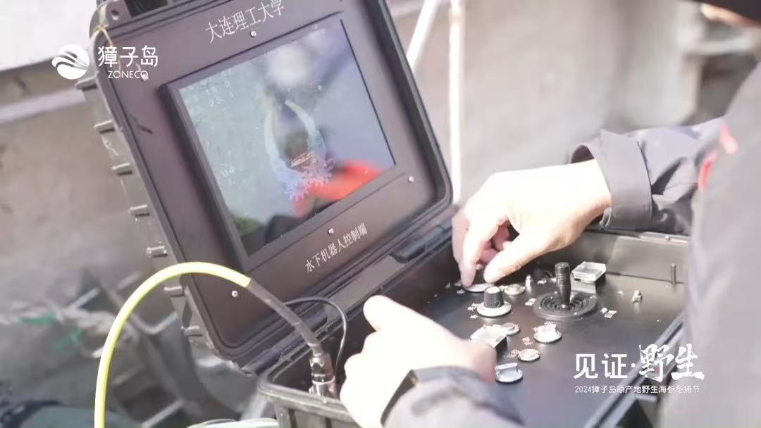 大連理工大學(xué)水下機(jī)器人團(tuán)隊(duì)是第三次參加冬捕節(jié),今年他們帶來(lái)了“赤甲紅號(hào)”水下機(jī)器人,在海底大展身手。