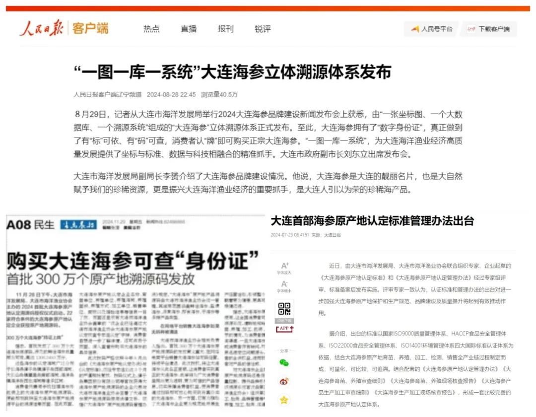 今年6月起,為保障大連海參產(chǎn)業(yè)的健康發(fā)展,大連市海洋發(fā)展局委托大連市海洋漁業(yè)協(xié)會(huì),圍繞大連海參標(biāo)準(zhǔn)與溯源體系,制定了大連首部《大連海參原產(chǎn)地認(rèn)定標(biāo)準(zhǔn)和管理辦法》以及《大連海參原產(chǎn)地現(xiàn)場(chǎng)核查細(xì)則》,為大連這一優(yōu)勢(shì)資源“立標(biāo)”;8月,大連市海參原產(chǎn)地認(rèn)定的“一圖一庫(kù)一系統(tǒng)”對(duì)外發(fā)布,大連首張“大連海參原產(chǎn)地坐標(biāo)圖”、首個(gè)“大連海參原產(chǎn)地大數(shù)據(jù)庫(kù)”,首個(gè)由第三方監(jiān)督的“大連海參原產(chǎn)地溯源系統(tǒng)”陸續(xù)出臺(tái)。