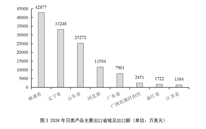 (四)貝類產(chǎn)品的主產(chǎn)區(qū)也是主要出口省域