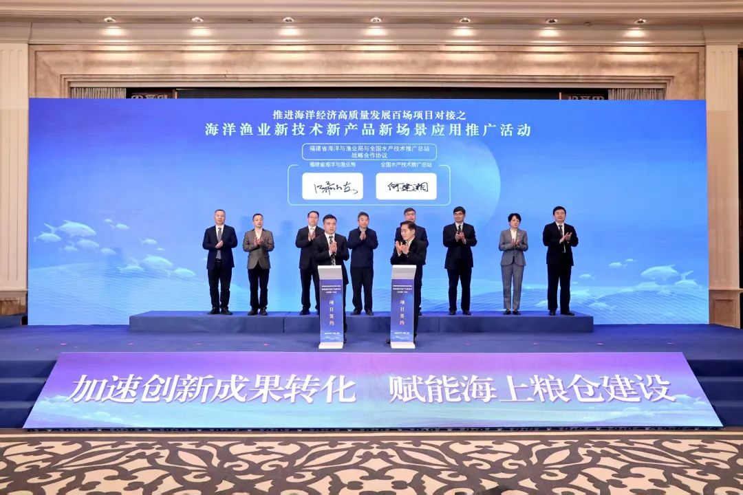 顏志煌表示,福建省要強(qiáng)化海洋漁業(yè)科技力量統(tǒng)籌,整合全國(guó)頂尖科研力量和優(yōu)勢(shì)創(chuàng)新資源。要推進(jìn)與全國(guó)水產(chǎn)技術(shù)推廣總站戰(zhàn)略合作,集中發(fā)布一批前沿新技術(shù)新產(chǎn)品新場(chǎng)景,共建國(guó)家級(jí)水產(chǎn)良種中心,深化“海魚陸?zhàn)B”閩寧漁業(yè)協(xié)作樣板,拓展南北接力海水養(yǎng)殖新模式等一批高質(zhì)量項(xiàng)目,賦能海洋漁業(yè)全鏈升級(jí),帶動(dòng)科技創(chuàng)新成果加速轉(zhuǎn)化落地,為全省乃至全國(guó)發(fā)展大局作出新的貢獻(xiàn)。