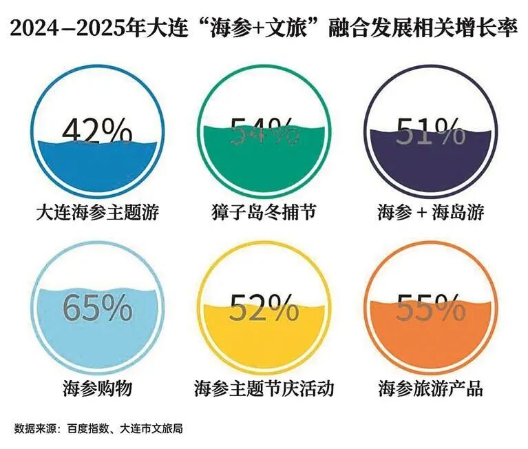 以冬捕IP為契機,大連“海參+文旅”融合業(yè)態(tài)呈現(xiàn)多點爆發(fā)的增長態(tài)勢。從觀捕到賞景,從品鑒到購物,海參將單一的旅游場景拓展為“體驗+消費”的復(fù)合型鏈條,海洋資源正轉(zhuǎn)化為實實在在的經(jīng)濟增量。