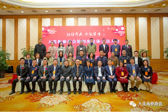 領(lǐng)導(dǎo)嘉賓與大連海參商會全體會員合影