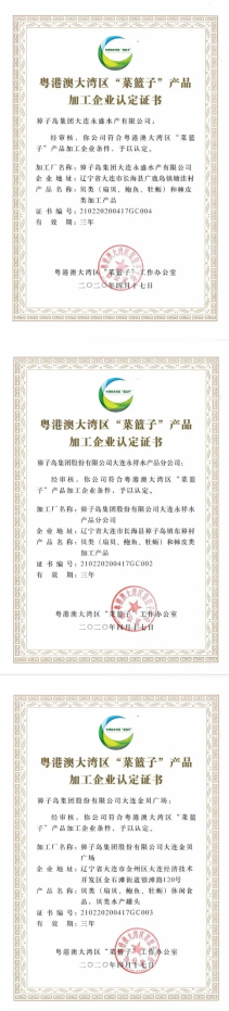 獐子島集團(tuán)獲粵港澳大灣區(qū)“菜籃子”1個(gè)生產(chǎn)基地+3個(gè)產(chǎn)品加工企業(yè)認(rèn)定