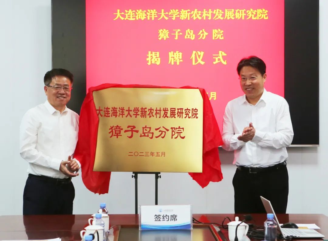 李衛(wèi)國(guó)董事長(zhǎng)與姚杰書(shū)記為“大連海洋大學(xué)新農(nóng)村發(fā)展研究院獐子島分院”揭牌
