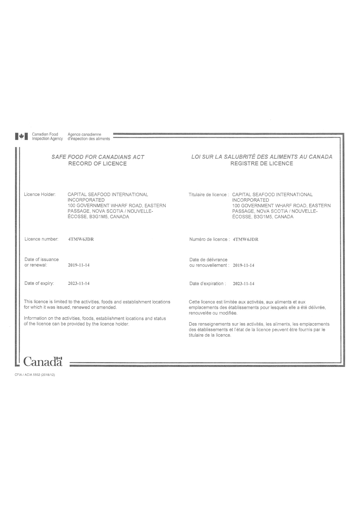 Established 2014, located in Eastern Passage, Nova Scotia, Canada. Main products and species: Live Canadian Lobster and Halibut Capacity: 2 modern Live lobster holding facilities which completed and operated from 2018 and 2019 with maximum holding capacity of 250,000lbs, average holding capacity of 200,000lbs.
